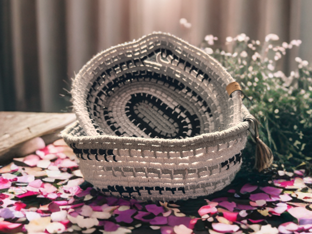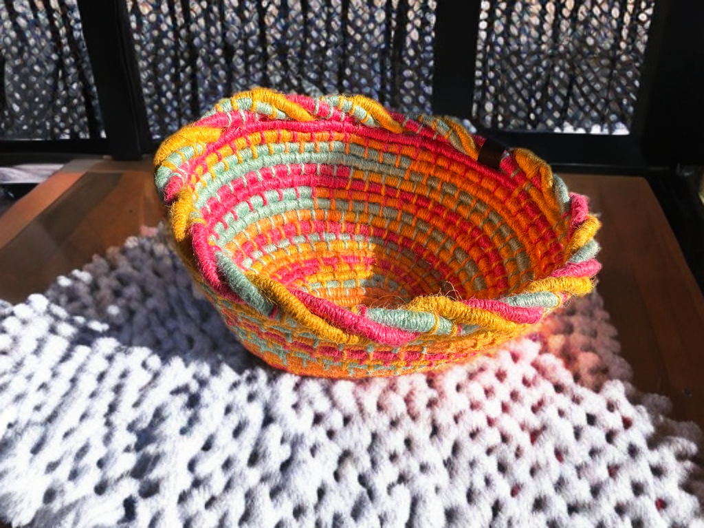 Wenn ich Körbe mache, kann ich mich ganz darin verlieren, das ist bei jeder Art des Gestaltens so, zumindest für mich. Das heißt nicht, dass es ganz locker und leicht ist. Ein gewisses Maß an Konzentration ist auch dabei. Der Faden muss sauber und fest gewickelt werden, ansonsten löst sich am Ende etwas oder es sieht einfach nicht gut aus.